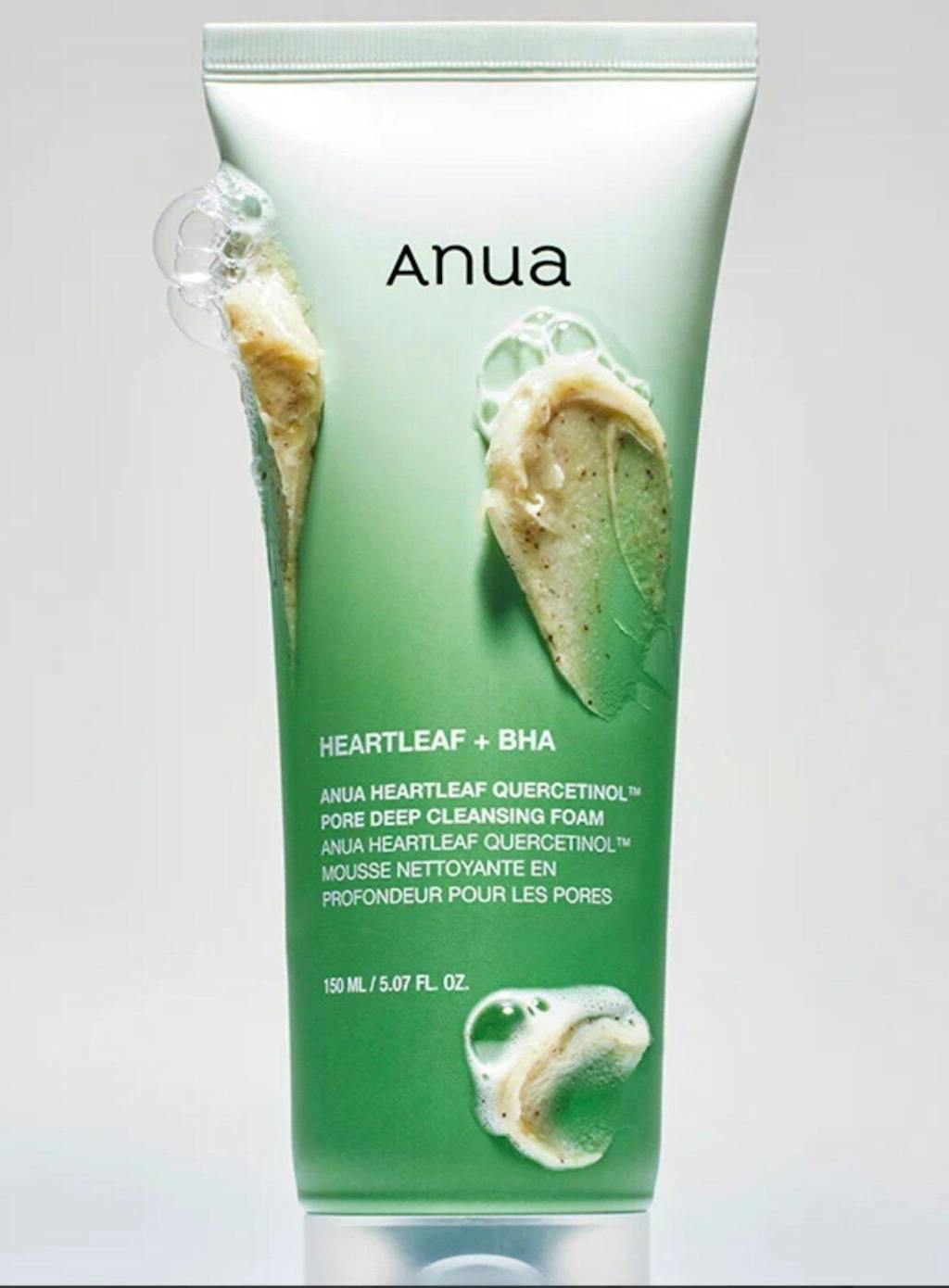 The Anua Heartleaf Quercetinol Pore Deep Cleansing Foam is a gentle yet powerful cleanser designed to deeply purify pores while soothing and hydrating the skin. Formulated with Heartleaf Extract and Quercetinol, it effectively removes impurities and excess sebum while calming. The inclusion of 0.5% BHA and Heartleaf powder, helps to slough off dead skin cells. Infused with triple Hyaluronic Acid, it provides a refreshing, hydrating finish, leaving skin soft and supple. With Anti-Sebum P complex from 4 plant extracts, this cleanser also helps refine pores and control oil. Ideal for daily use, it features a light foam texture that delivers a clean, smooth, and balanced complexion.
