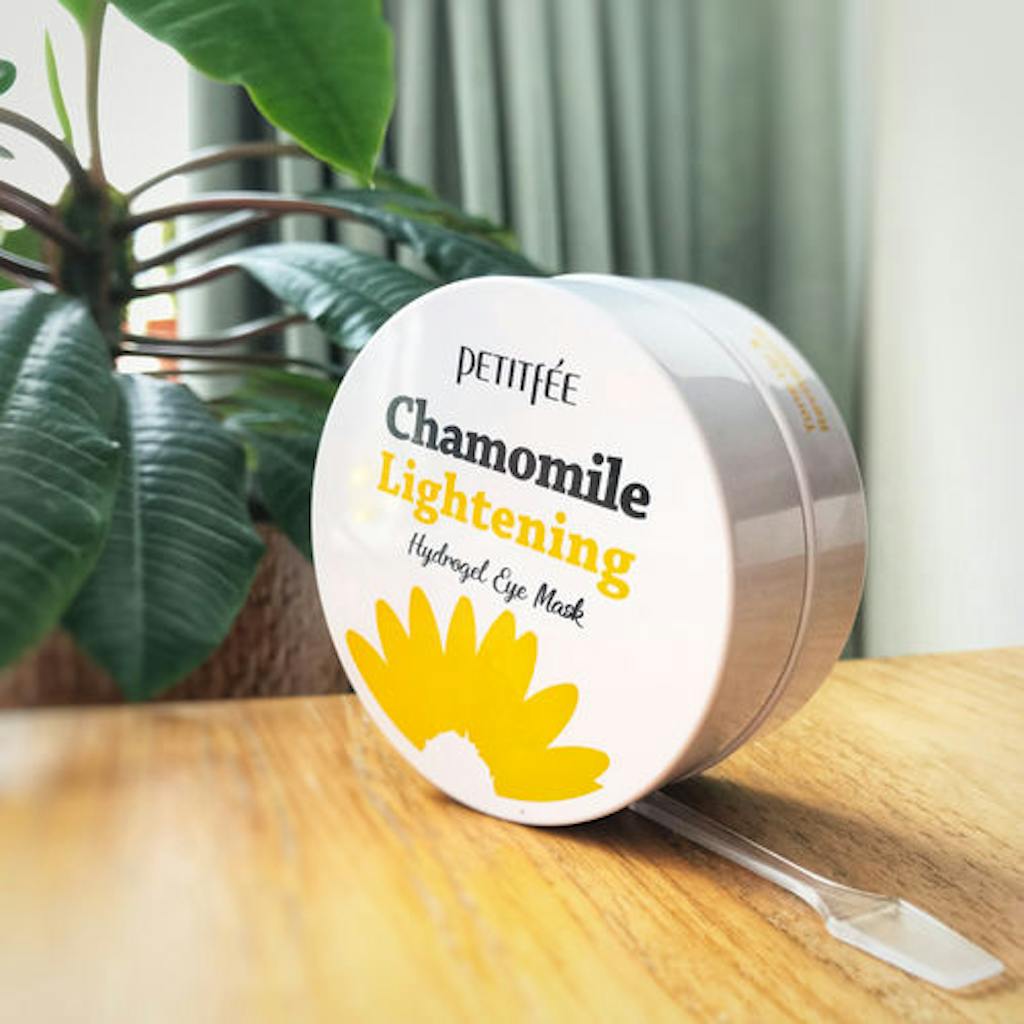 The PETITFEE Chamomile Lightening Hydrogel Eye Mask are hydrogel eye patches infused with the Yellow Complex including chamomile, yuja, pumpkin and different kinds of plant-based extracts to nourish and brighten dull skin.